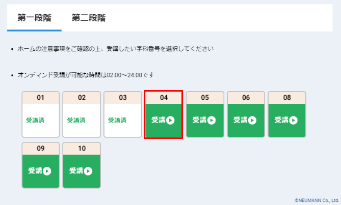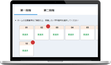 受講は1つの端末のみを利用してください。 - ⑧各時限50分間、継続して視聴することで受講済となります。