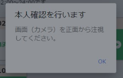 「本人確認を行います」のメッセージが表示されたらOKボタンを押さずとも自動的に認証が始まります。スマートフォン等のフロントカメラを正面から注視してください