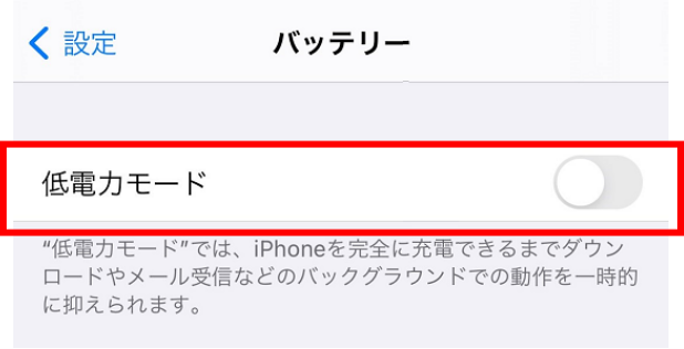 スマートフォンの機種によっては、バッテリーを長持ちさせるための低電力モードが自動的に ONになっていることがあります。低電力モードの場合、オンデマンド映像の再生が始まらないことがあります。